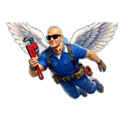 Los Angeles Plumbing - Angel plumber flying over the LA skyline, 5-star rated 24-hour emergency plumbing service